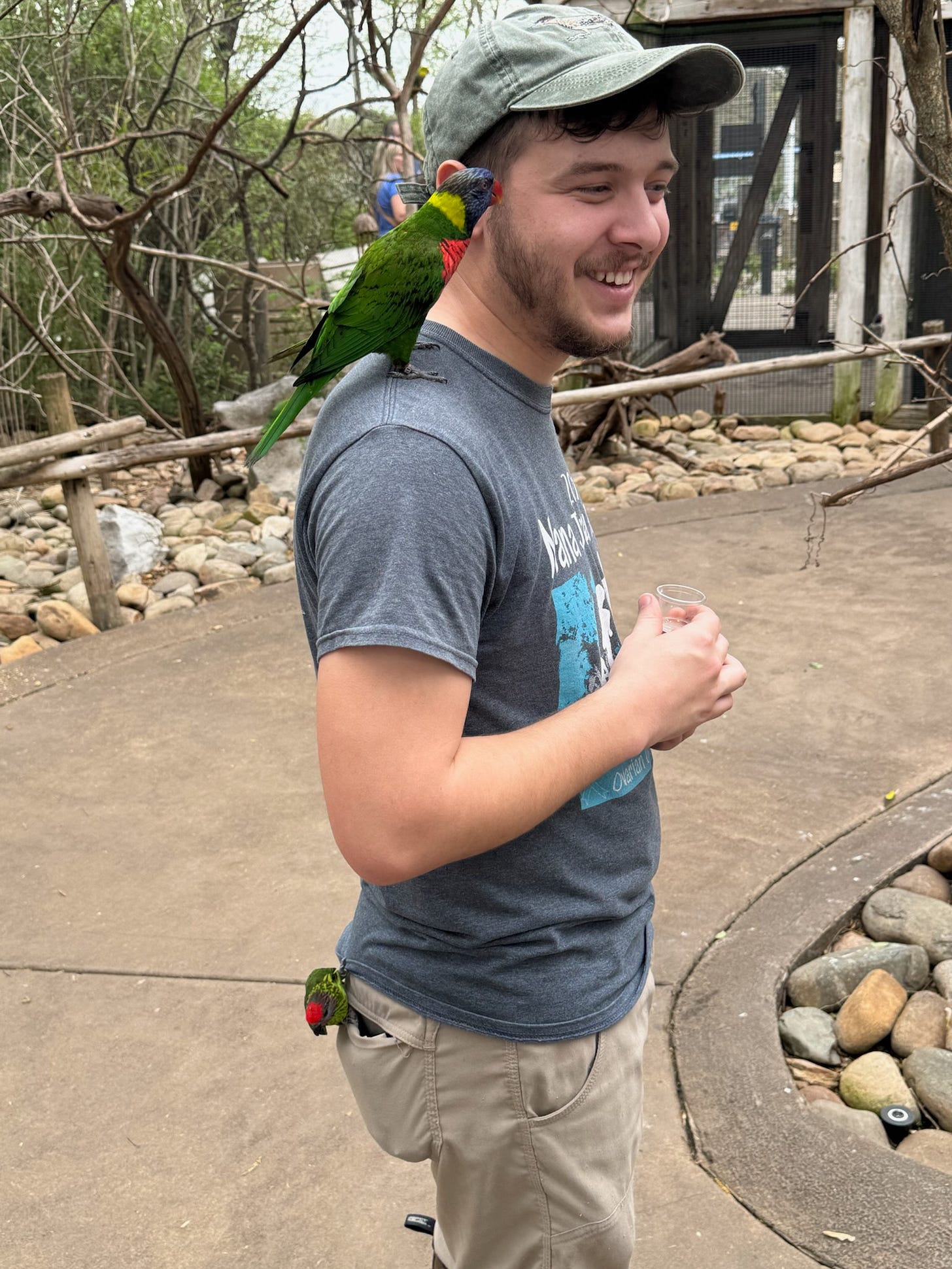 We made it through nearly all the exhibits, and we decided we would visit the aviary before we left. We arrived at the entrance, and each bought a cup of nectar. Before long, I realized I had been pickpocketed. I was shocked, but luckily, one of my friends happened to be taking a picture of me while the thief was tearing away at my wallet!